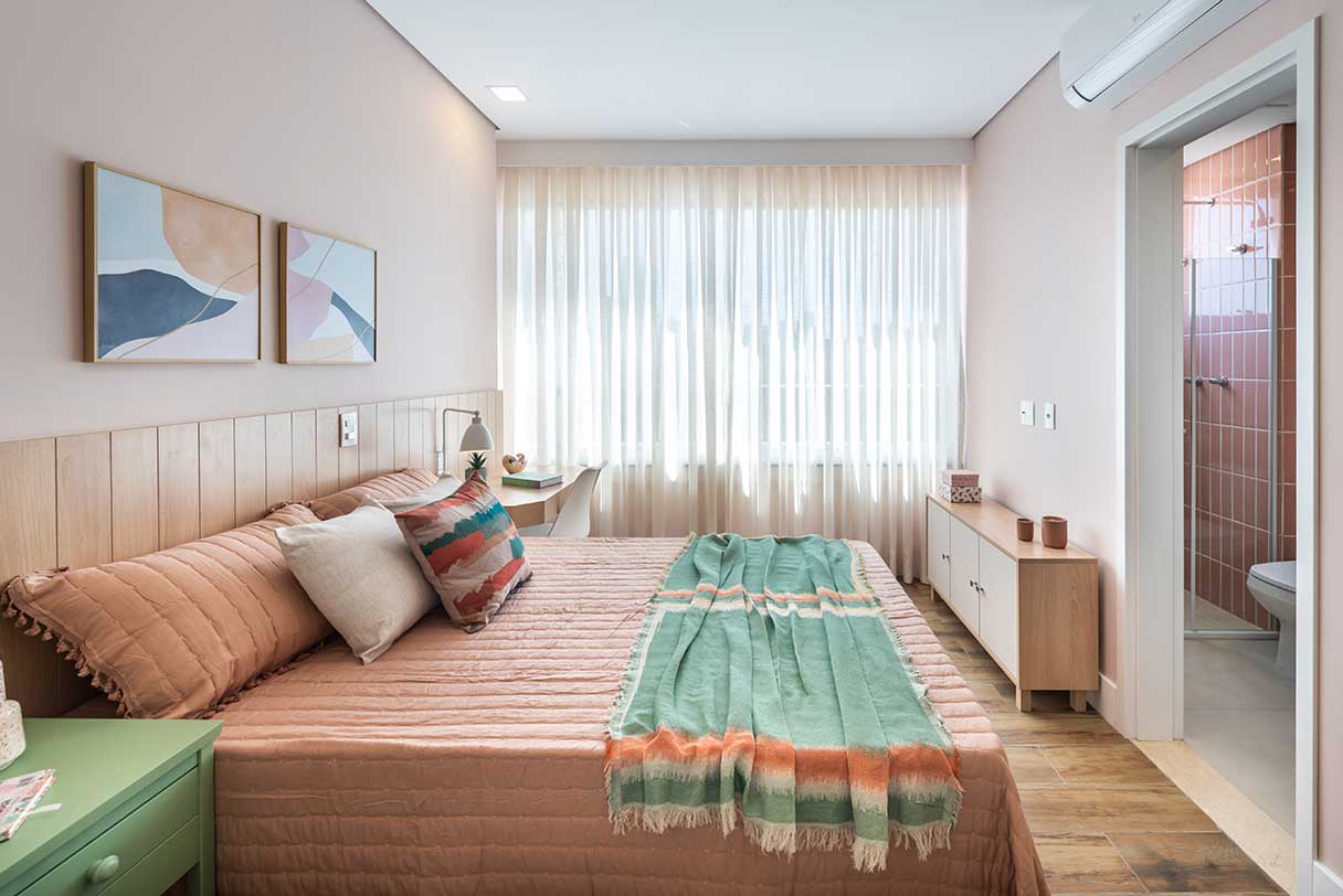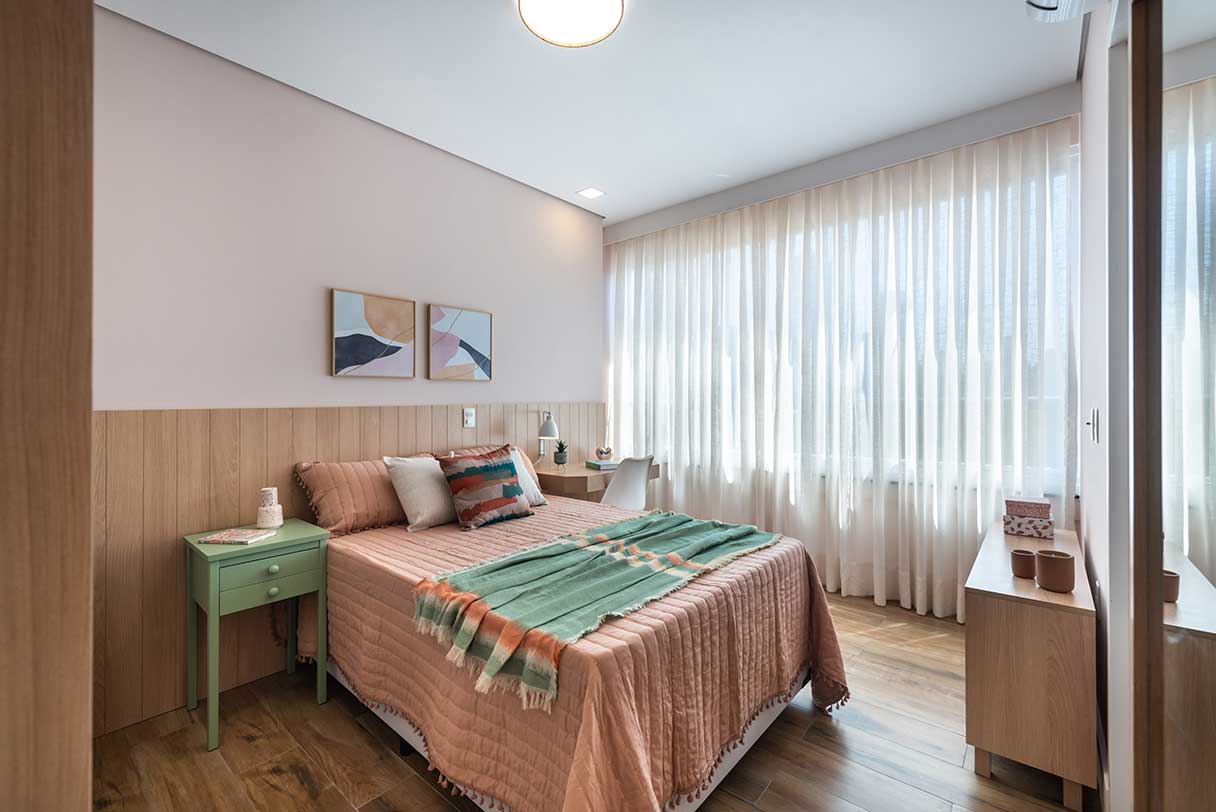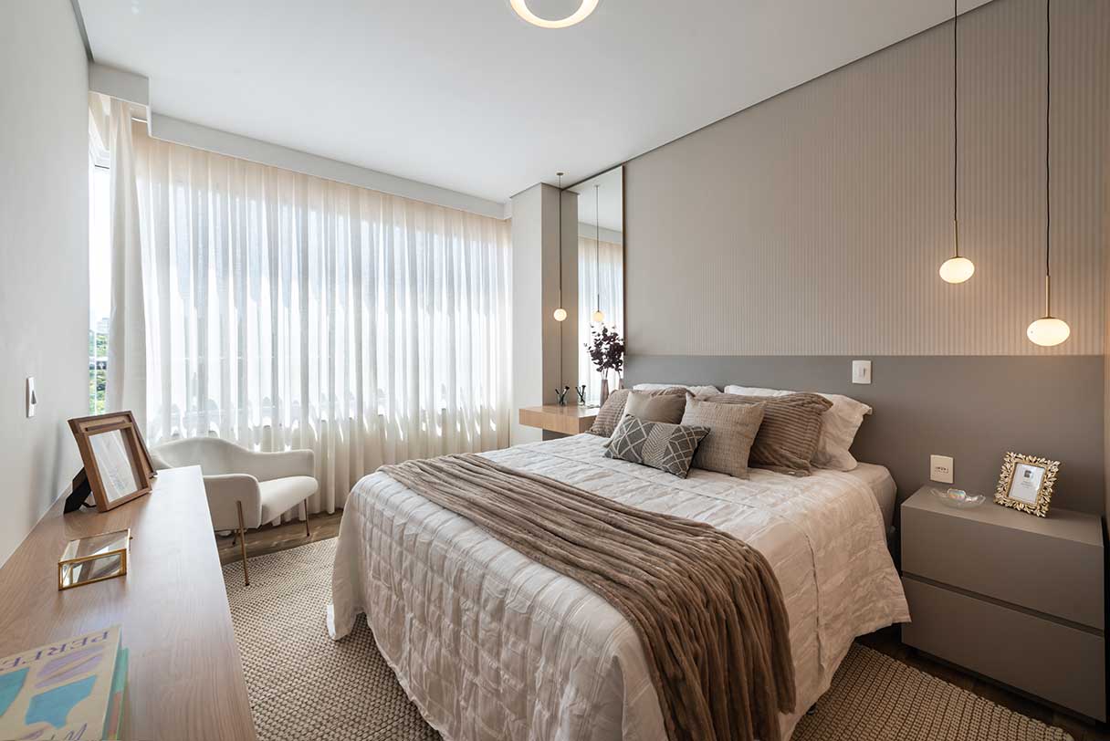 Amplas portas de varandas, com persianas de enrolar nas suítes.