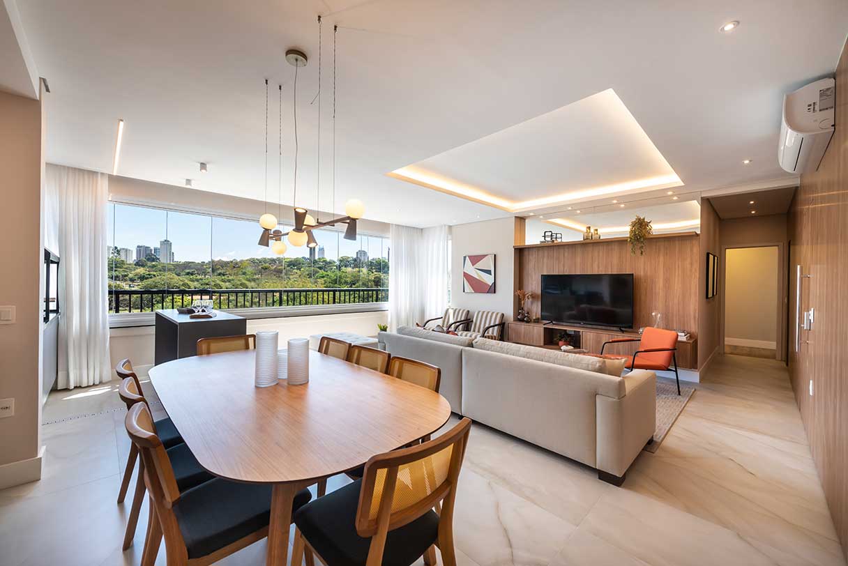 Amplas portas de varandas, com persianas de enrolar nas suítes.