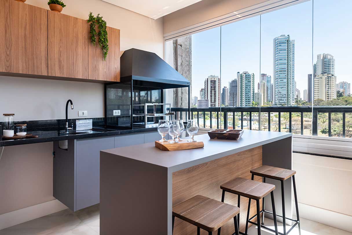 Infraestrutura para instalação de churrasqueira no terraço.